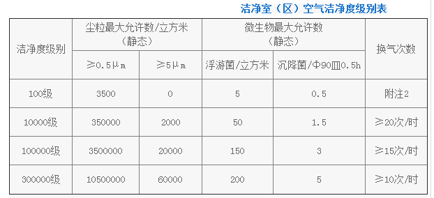 (潔凈房空氣潔凈度等級劃分標準)